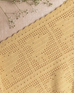 Bright and cheerful, Sunshine Hop features a row of sweet crocheted bunny motifs that bring delight to any space. Drape it over a nursery chair, use it for tummy time, or pack it for picnics under the sun.